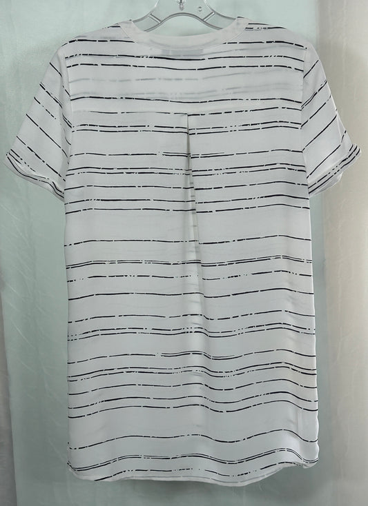 APT.9 Women's Small White Blouse with Black Stripes and Front Zipper | Short Sleeve Business Casual Top