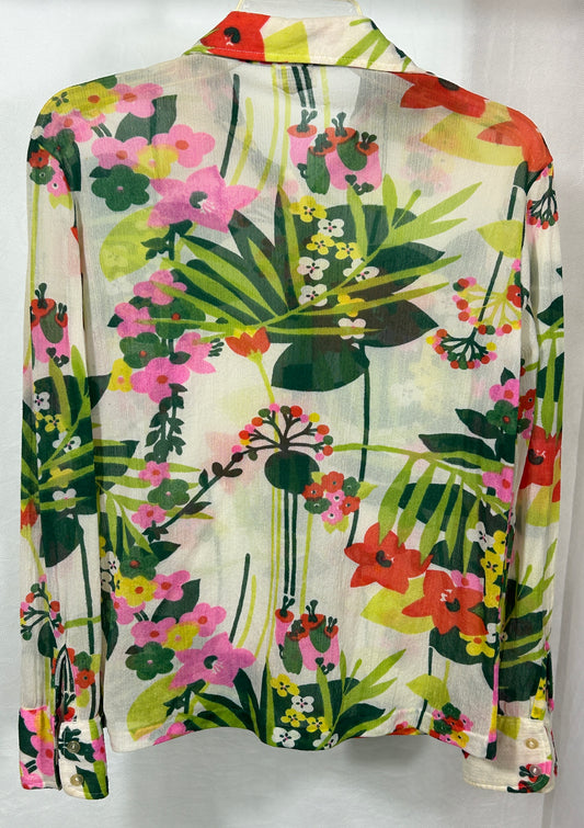 Vintage Glen Harbour Sheer Nylon Blouse - Tropical Floral Print - Size M