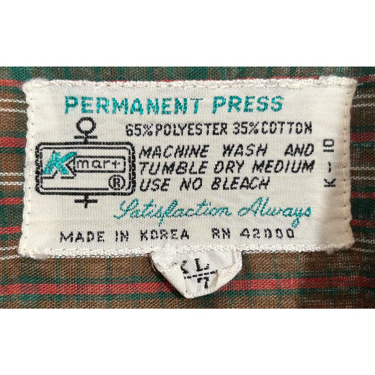 Vintage Men's Brown Stripe Button-Up Shirt XL Made in Korea 70s Retro