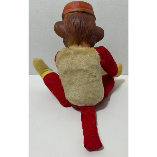 Vintage Red Corduroy Monkey Toy with Rubber Head – 13" Tall Circus Style Doll