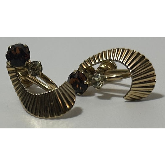Vintage Van Dell Gold-Tone Screw Back Earrings with Amber Rhinestones