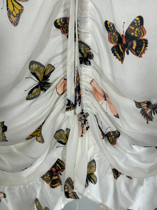 Cato Butterfly Print Ruched Blouse M Ivory Breeze | Long Sleeve Spring Top with Peplum Hem