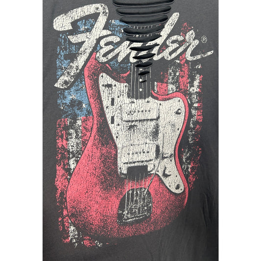 Fender Graphic Cutout Neck T-Shirt Black Oversized Women’s Plus Size 3X