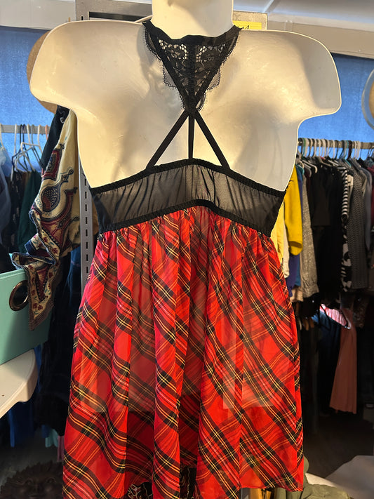 Flirty Plaid & Lace Babydoll Lingerie – Halter Tie