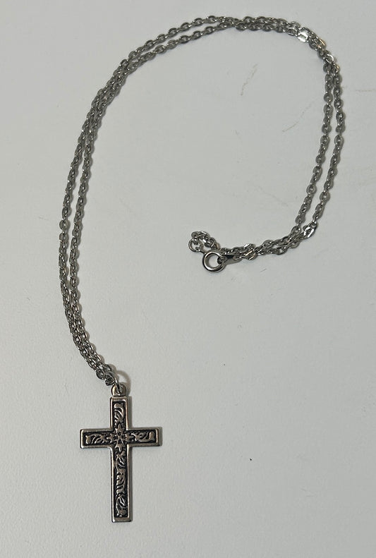 Vintage Silver Tone Cross Pendant Necklace with Ornate Starburst Design - Unisex Christian Religious Jewelry