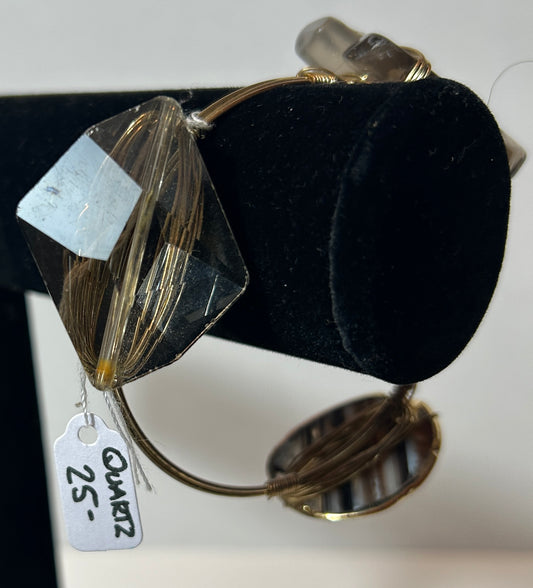 Handmade Wire-Wrapped Quartz & Agate Bangle Bracelet – Natural Crystal Statement Jewelry