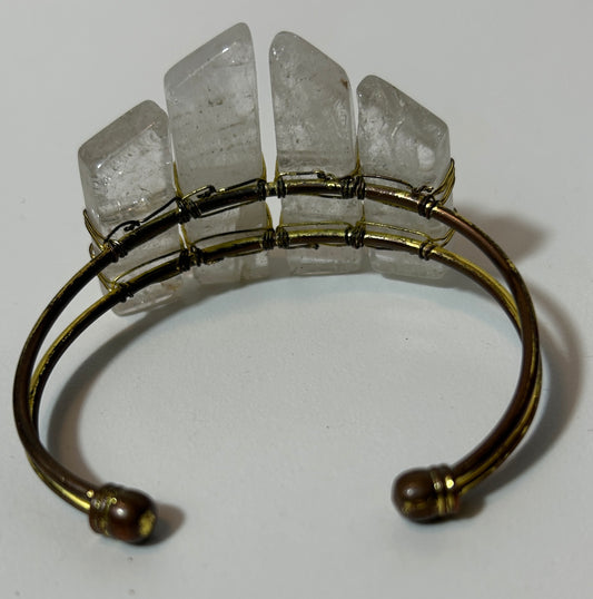 Raw Clear Quartz Crystal Cuff Bracelet – Wire Wrapped Adjustable Boho Style Bangle