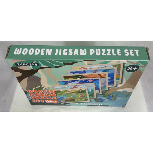 Wooden Jigsaw Puzzle Set 6 Pack – 24-Piece Puzzles for Kids Ages 3+