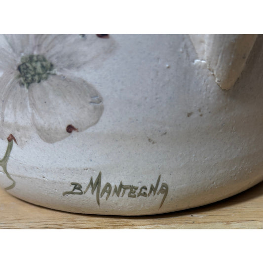 Hand-Painted Pottery Pitcher Signed B Mantegna – Dogwood Floral Design