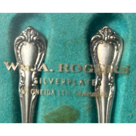 Vintage Wm. A. Rogers Silverplate Baby Spoon & Fork Set in Original Box