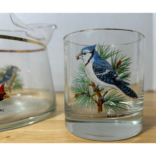 West Virginia Glass Co Songbird Pitcher & Glass – Cardinal & Blue Jay