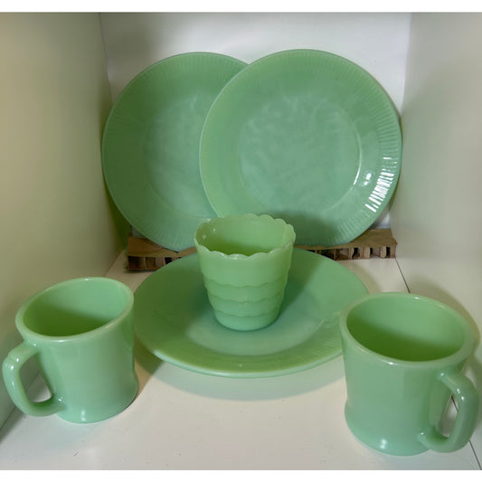 Fire-King Jadeite 6-Piece Set Anchor Hocking 1960s Mugs Plates Bowl