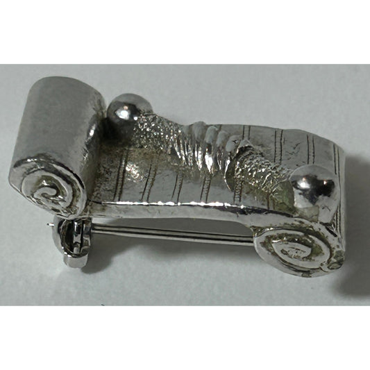 Vintage ORA Silver-Tone Torah Scroll Brooch Pin Jewish Judaica 1"