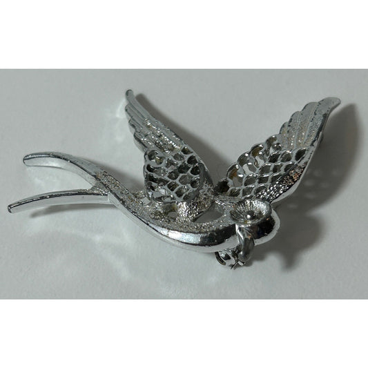 Vintage 1971 Sarah Coventry Silver Tone Peace Dove Bird Brooch Pin