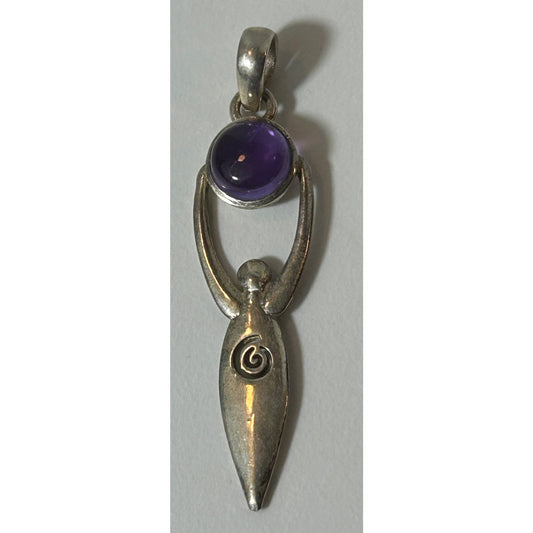 Vintage Sterling Silver Goddess Pendant with Amethyst Cabochon 2.5"
