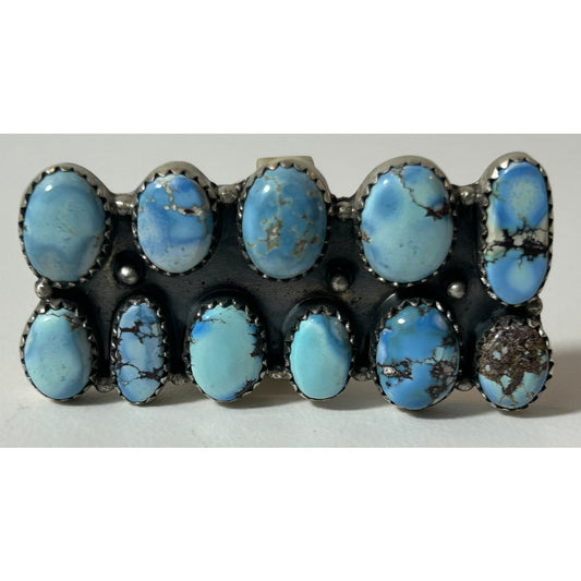 Sterling Silver 11‑Stone Turquoise Cluster Statement Ring 2" Wide - NWT