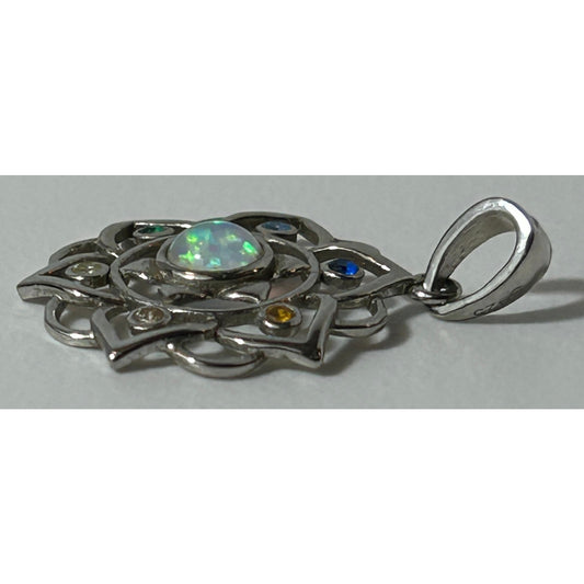 Sterling Silver Lotus Mandala Pendant with Opal & Multi-Gem Accents 1"