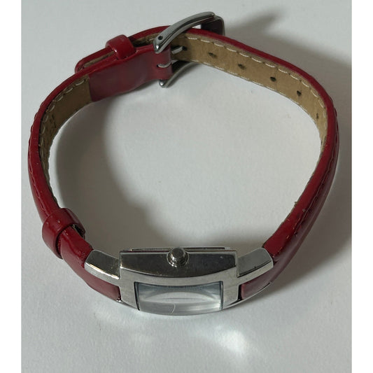 Kenneth Cole Reaction Women’s Red Leather Strap Square Watch – Silver Dial