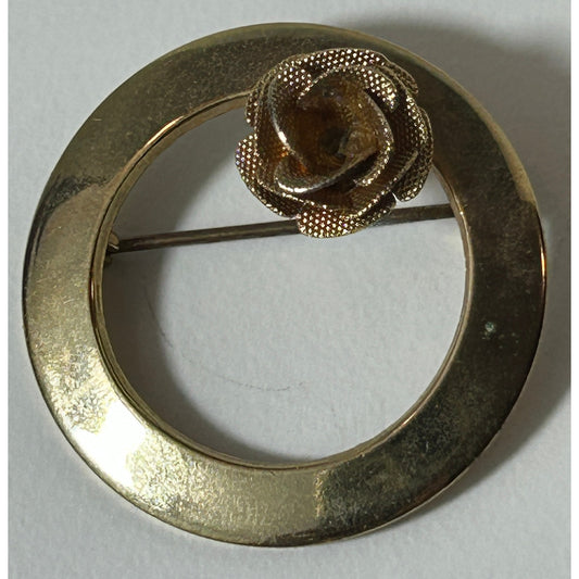 Vintage Gold Tone Rose‑Center Circle Brooch 2″