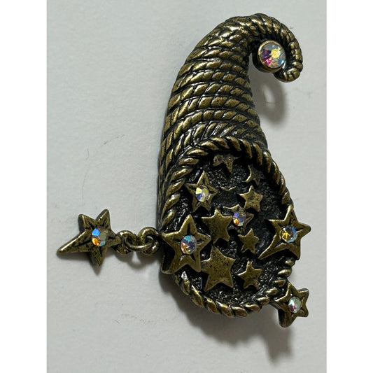 Vintage DD Signed Cornucopia Star Brooch with Rhinestones 2" Wide