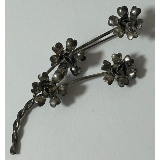 Vintage Sterling Silver Floral Bouquet Brooch Pin 3D Roses 3" x 1.5"