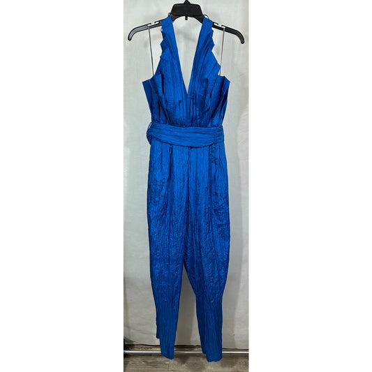Vintage Norman’s Atlanta Blue Crinkle Halter Jumpsuit with Belt - Size XS/S