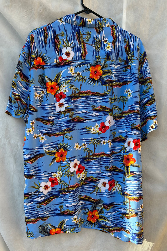 Men's Hawaiian Aloha Shirt – Vibrant Blue Tropical Print, Size XL