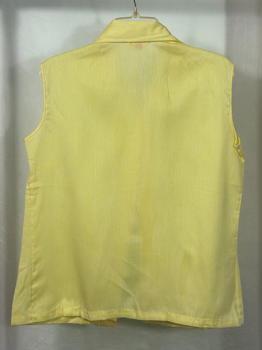 Vintage Laura Mae LifePress Sleeveless Button-Up Blouse - Lemon Yellow - Retro 70s Workwear Size L/XL