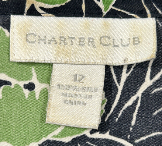 Vintage Charter Club 100% Silk Wrap Blouse – Black & Green Floral Print, Size 12