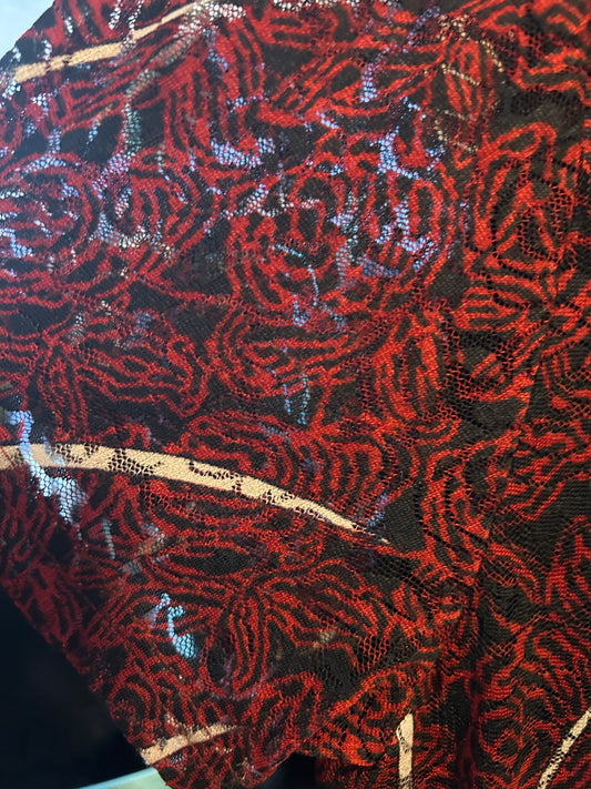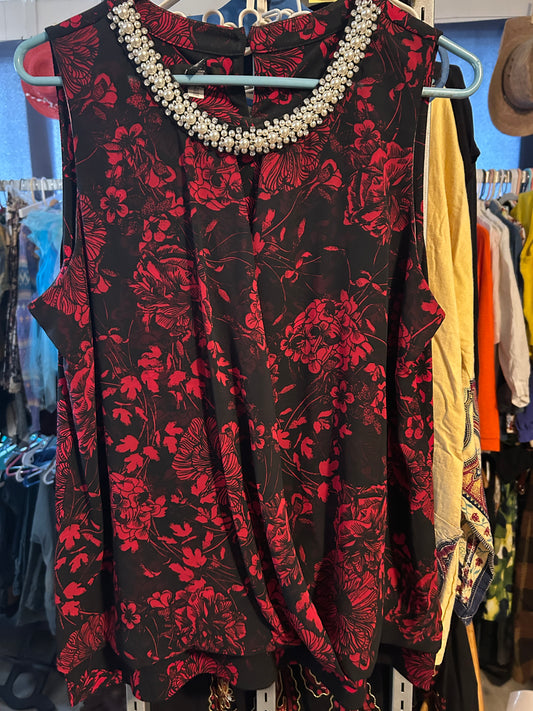 Alfani Black & Red Floral Sleeveless Blouse with Pearl Embellished Collar – Size L