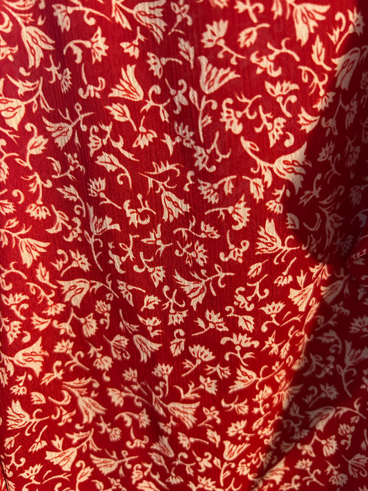 Vintage Red Floral Pussy Bow Blouse – Feminine & Elegant