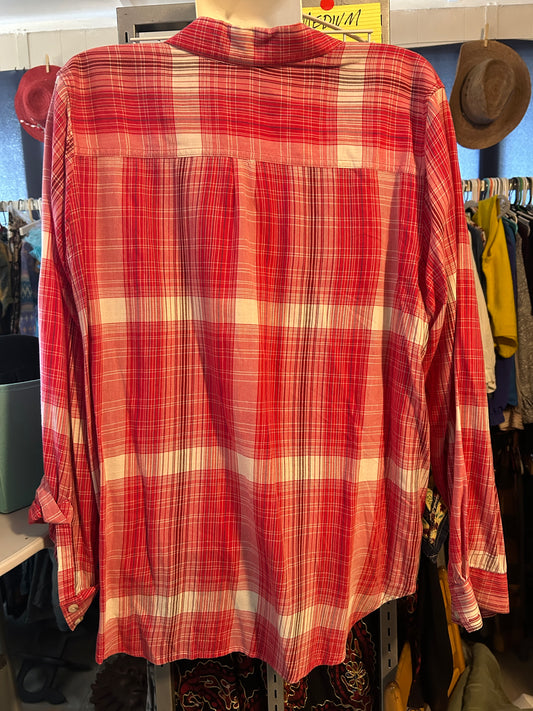 Cozy Red & White Plaid Button-Up Shirt – Oversized & Relaxed Fit