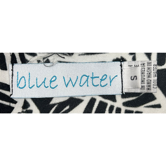 Blue Water Black White Abstract Print Rayon Top Small Handmade Indonesia
