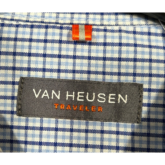 Van Heusen Traveler Men’s Blue Check Long Sleeve Shirt Size Medium