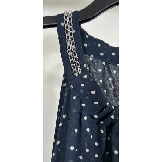 Calvin Klein Navy Polka Dot Chain Detail Sleeveless Blouse Size L