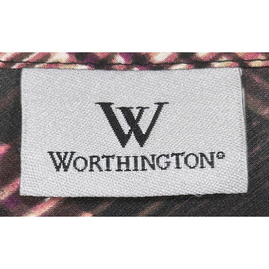 Worthington Pink Brown Abstract Tiered Chiffon Blouse Size L