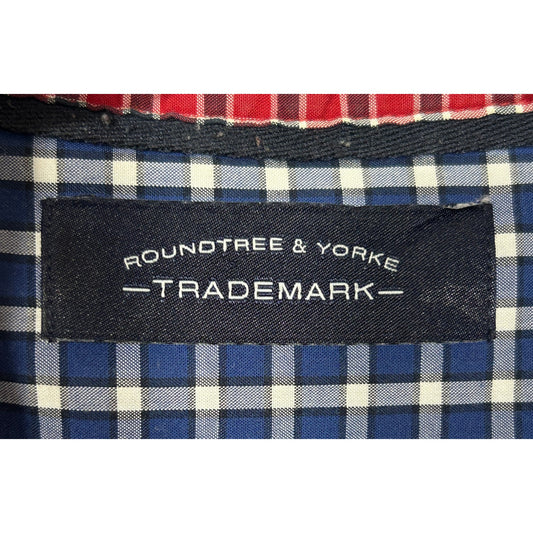 Roundtree & Yorke Blue Check Short Sleeve Shirt Size M 100% Cotton