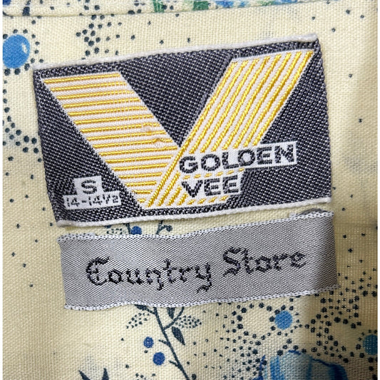 Vintage Golden Vee Country Store Floral Shirt S Blue Flower Print 70s