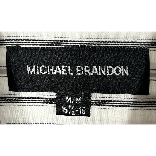 Michael Brandon Medium Dress Shirt White Black Stripe Button Up 15.5-16