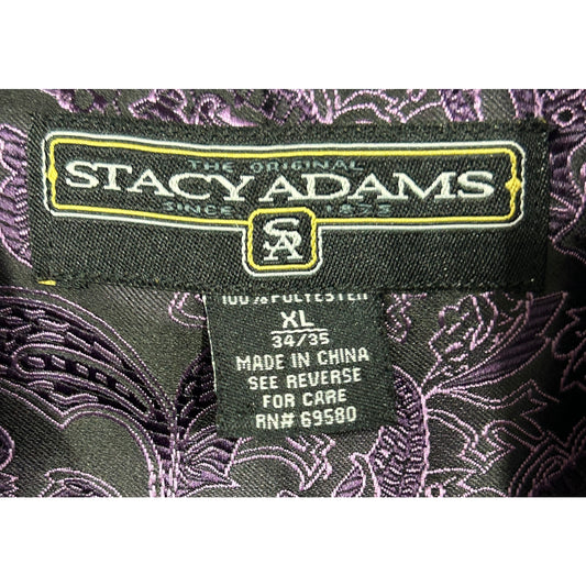 Stacy Adams XL Black Purple Paisley Dress Shirt Satin Cuffs 34/35 Sleeve