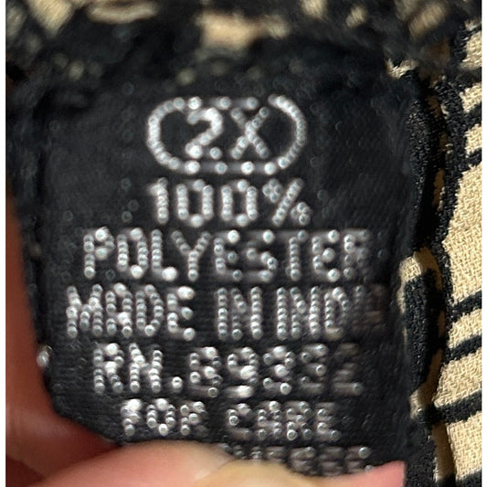 Vintage 90s Crinkle Textured Black Beige Abstract Print Tank Top 2X