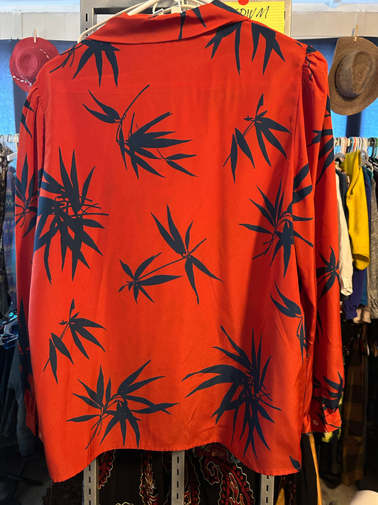 Vintage Notations Red Baroque Floral Blouse Size 16 | Made in Dominican Republic | 100% Polyester