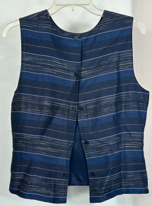 Ann Taylor Size 12 Sleeveless Back Button Blouse Top Navy Blue Stripe Linen Blend