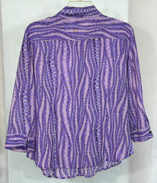 NY & Company Vintage Purple Button-Up Blouse | Sheer Long Sleeve Geometric Print | Size XL