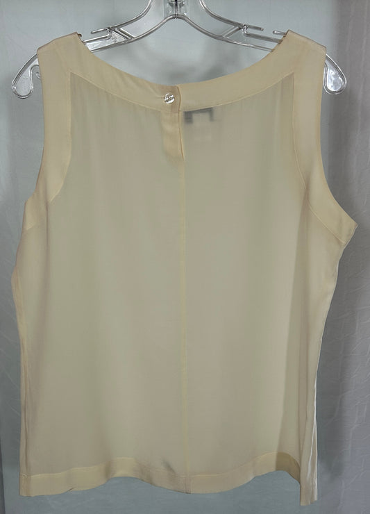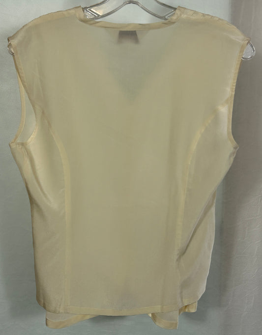 Marguerite Li 100% Silk Sleeveless Blouse | Medium | Cream Button-Front Pintuck Detail Top