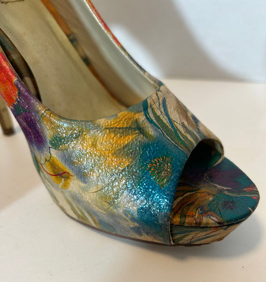 Torta Caliente Floral Peep-Toe Stiletto Heels - Size 8.5M