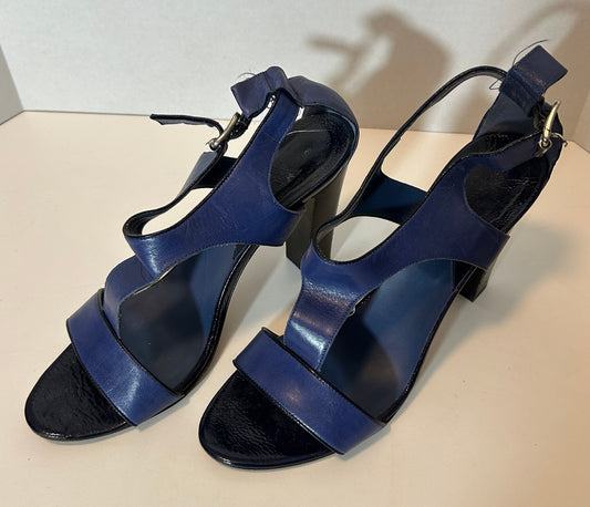 Vintage Blue Leather Strappy Block Heel Sandals – Size 10.5 – Made in Italy