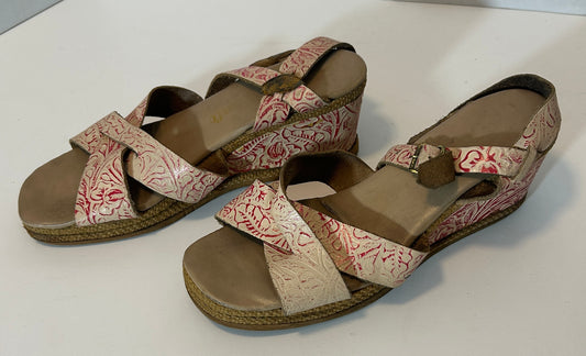 Soft Leather Floral Embossed Wedge Sandals – Vintage Boho Style Size 9.5