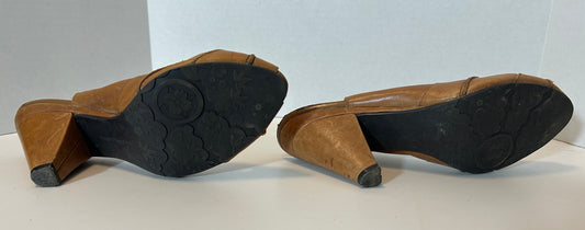 Hush Puppies Tan Leather Peep-Toe Slingback Heels – Vintage-Inspired Comfort Size 10M