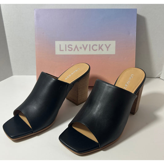 New Lisa Vicky Black Block-Heel Square-Toe Mule Heels – Size 8M, NIB